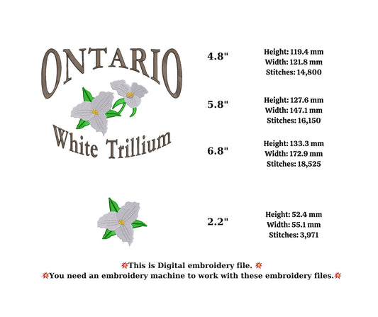 CANADA ONTARIO state flower embroidery machine,white trillium flower embroidery design