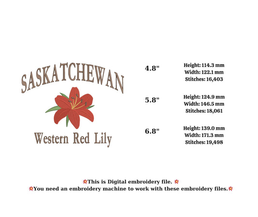 CANADA SASKATCHEWAN state embroidery design with Western Red Lily flower state
