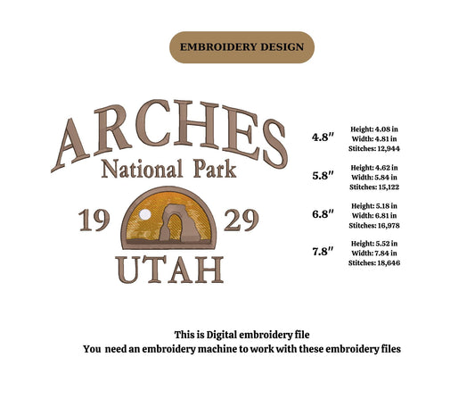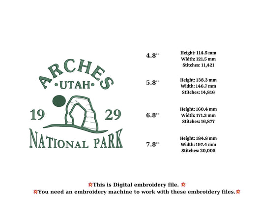 Arches utah National Park embroidery machine design national park,vintage embroidery,city embroidery state embroidery