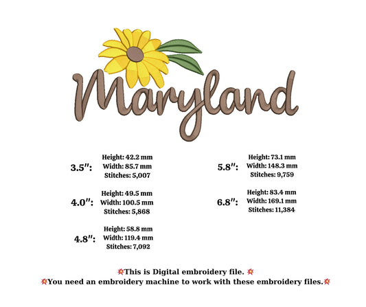 Maryland State embroidery Black-Eyed Susan Flower embroidery state design embroidery machine