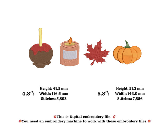 Autumn Halloween Embroidery Design, Trendy Pump Embroidery, candy apple, candle embroidery,autumn fall embroidery machine file