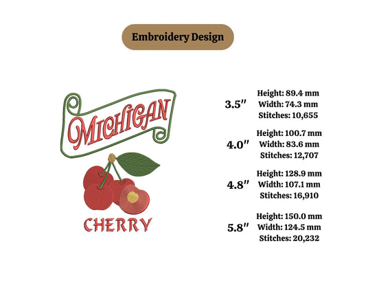 cherries Michigan fresh embroidery MICHIGAN State embroidery design cherry blossom Michigan embroidery state 4inch hoop