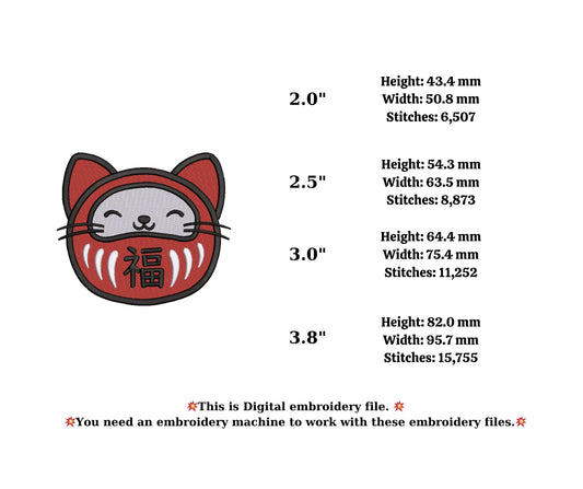 JAPAN cat doll embroidery design ,mini embroidery,cat digital dowload, Japanese embroidery, Japanese doll, daruma doll embroidery
