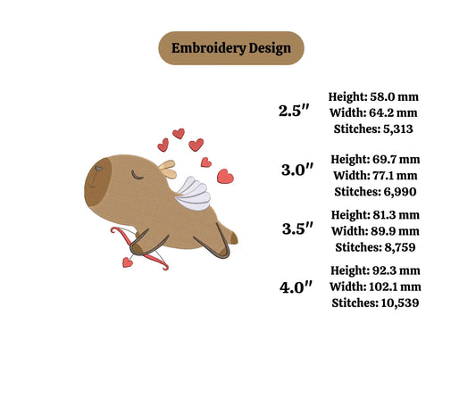 Capybara Machine Embroidery Design, Capybara Embroidery Design valentine embroidery machine cupid valentine embroidery animal embroidery