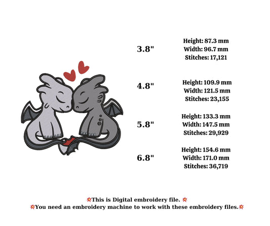 Toothless dragon couple embroidery design,embroidery valentine,embroidery files,embroidery toothless dragon,valentine designs