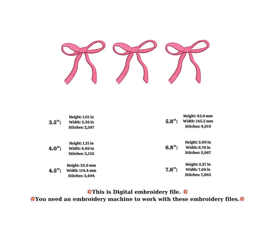 Ribbon Embroidery Machine File, Bow Embroidery Design PES DST, Satin Stitch 4 inch Ribbon, Embroidery Ribbon