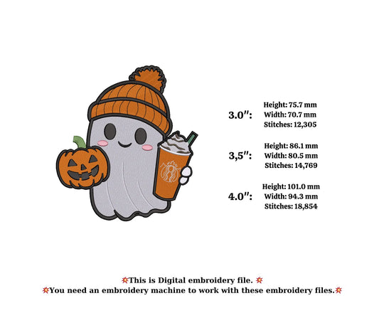 Pumpking Spooky Halloween embroidery ghost design ,Halloween cute ,boo embroidery spooky,spooky halloween starbuck embroidery