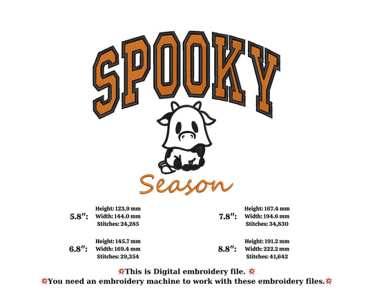 Spooky season Halloween embroidery ghost design ,Halloween cute ,boo embroidery spooky,spooky halloween cow embroidery